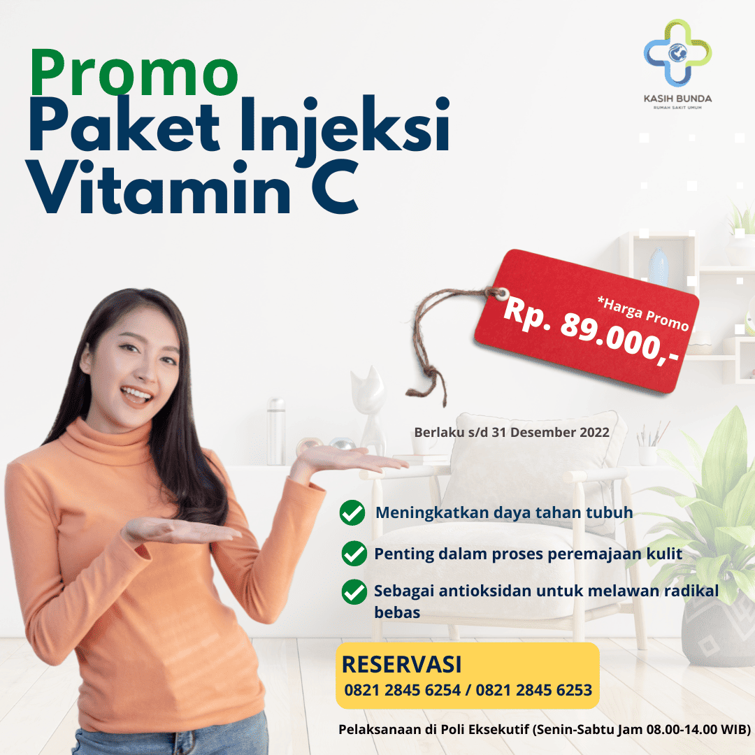 Oleh karena itu RSU Kasih Bunda menghadirkan paket suntik vitamin untuk memenuhi kebutuhan vitamin khususnya vitamin C pada tubuh