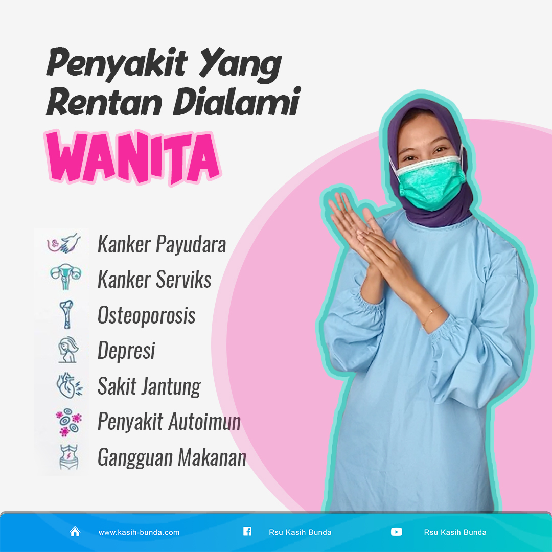 Laki atau perempuan, sama sama memiliki resiko untuk terserang suatu penyakit tertentu. Namun tahukah anda para perempuan, kalau ada beberapa penyakit yang leboih sering terjadi pada perempuan ketimbang laki laki...